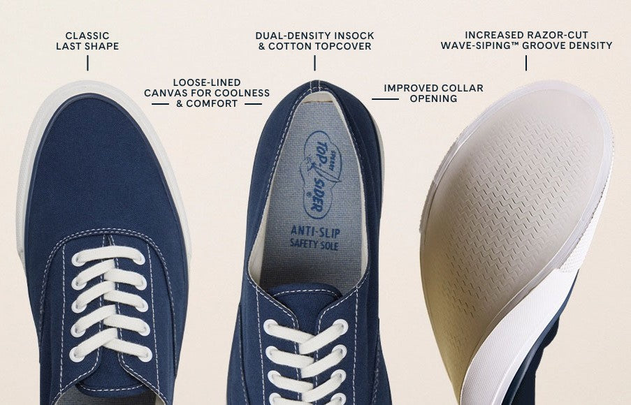 The CVO Reissue Lace-Up is a faithful recreation of Paul Sperry's iconic Circular Vamp Oxford — originally designed in the 1935s and still turning heads today. Built on a canvas upper with a memory foam lining, it's the kind of shoe you slip on in the morning and forget you're wearing by noon.